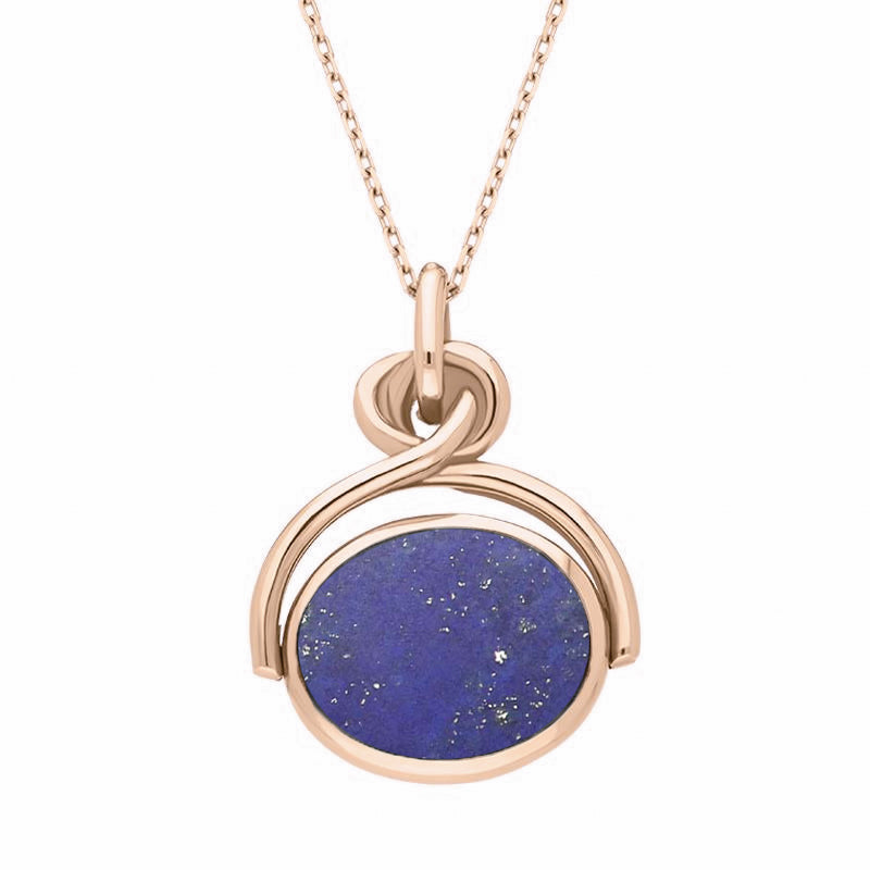 9ct Rose Gold Whitby Jet Lapis Lazuli Oval Swivel Fob Necklace, P096.