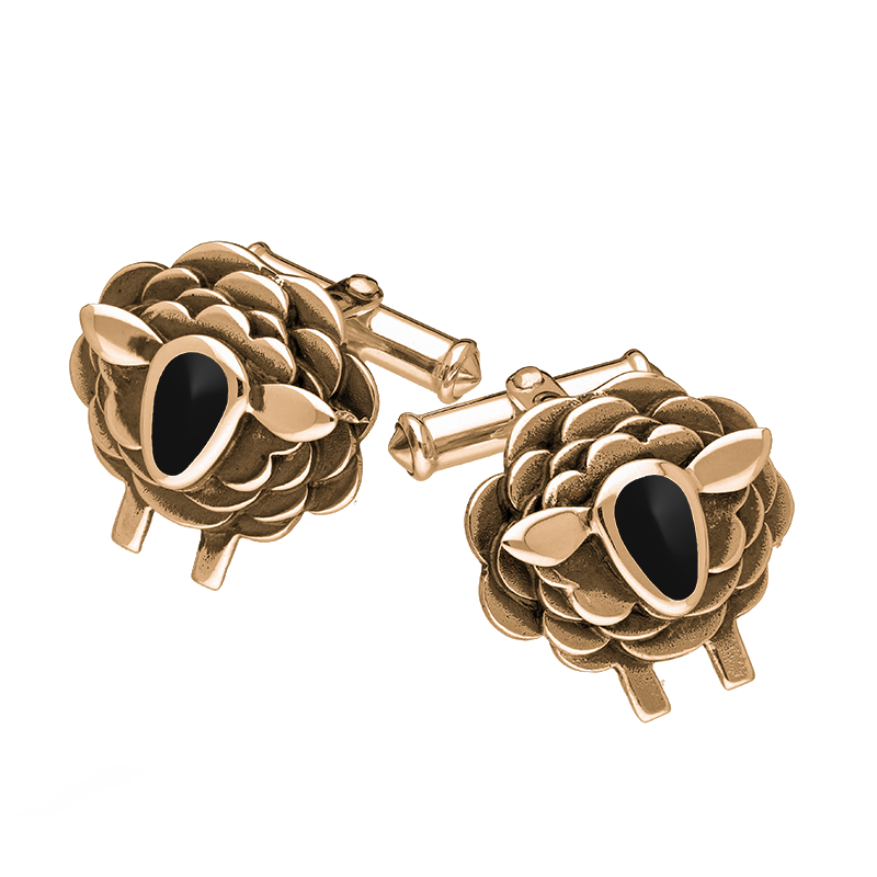 These simple cufflinks feature a beautiful sheep design, where a stunning piece of Whitby Jet completes the sheep face on each 9ct Rose Gold cufflink.