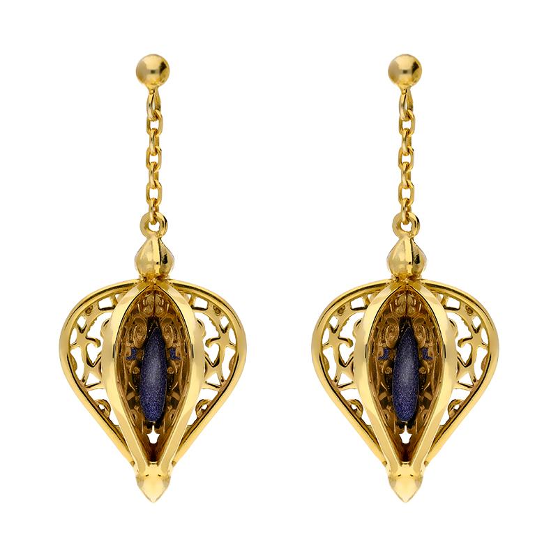 9ct Yellow Gold Blue Goldstone Flore Filigree Drop Earrings E1781