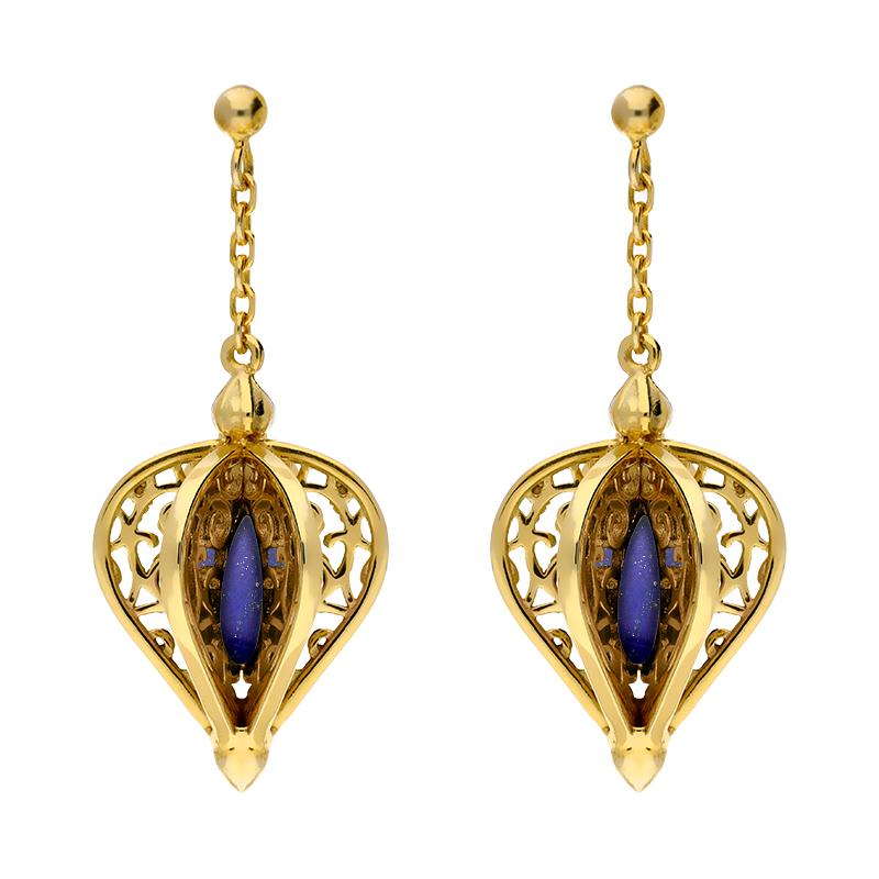 9ct Yellow Gold Lapis Lazuli Flore Filigree Drop Earrings