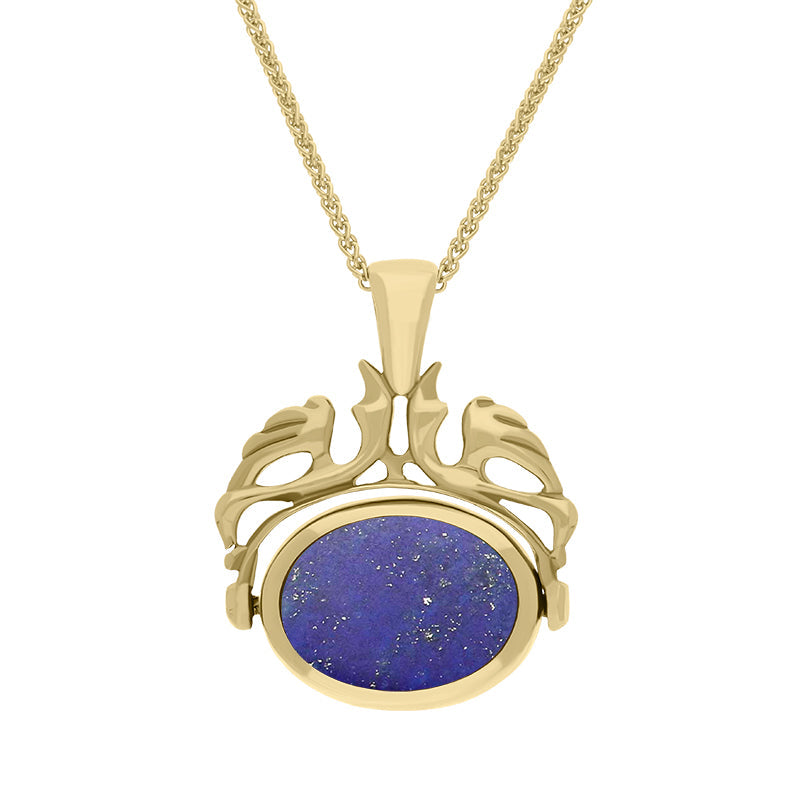 9ct Yellow Gold Whitby Jet Lapis Lazuli Double Sided Oval Swivel Fob Necklace, P104_4.
