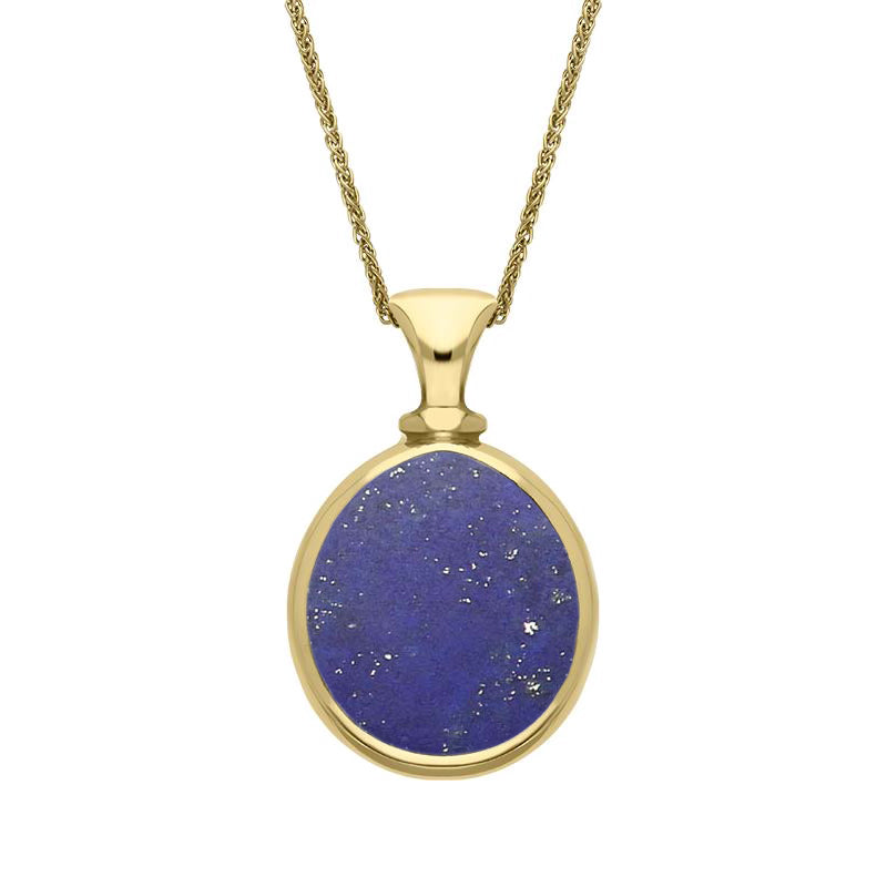 9ct Yellow Gold Whitby Jet Lapis Lazuli Small Double Sided Pear Fob Necklace, P220.