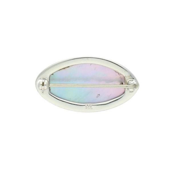 This stunning brooch features a stunning cabochon of rare Derbyshire Blue John. The stone is elegantly set within sterling silver and fastened by a classic brooch clasp.