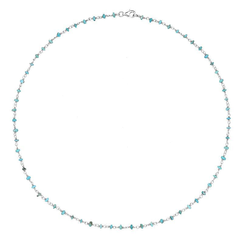 This Turquoise and sterling silver Shop Amber necklace features numerous, 3mm sized Turquoise gemstones, set on a delicate sterling silver chain link necklace.  A perfect gift for someone special.