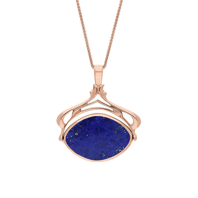 18ct Rose Gold Whitby Jet Lapis Lazuli Marquise Swivel Fob Necklace, P115_10.