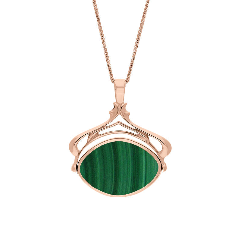 18ct Rose Gold Whitby Jet Malachite Marquise Swivel Fob Necklace, P115_10.