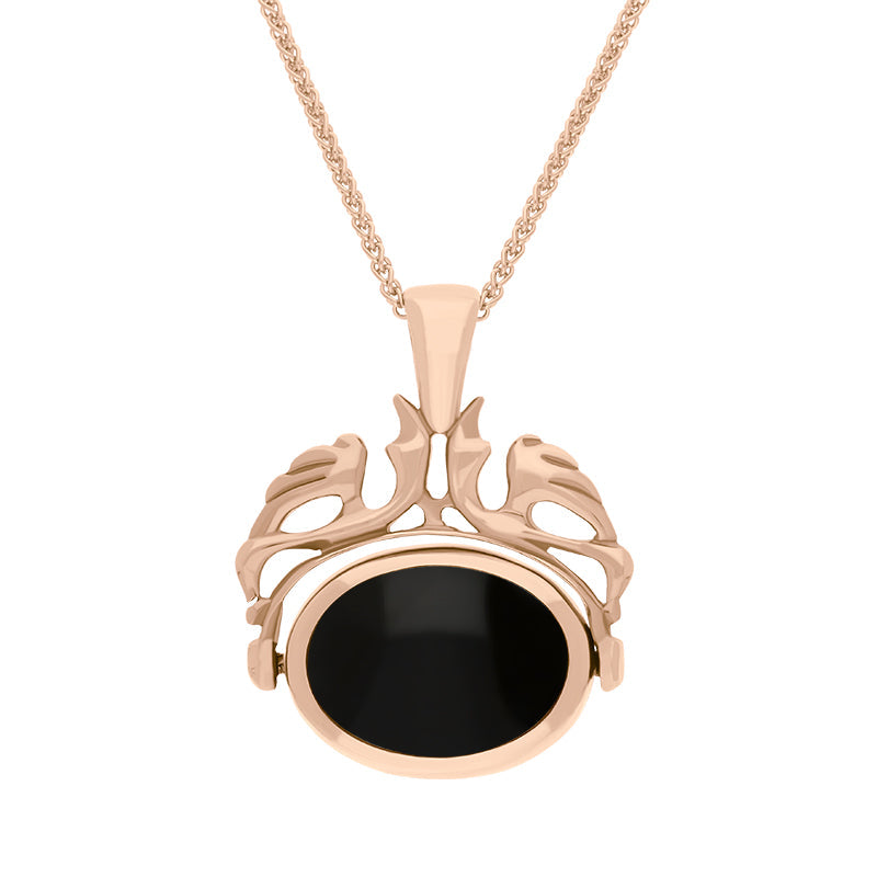 18ct Rose Gold Whitby Jet Turquoise Double Sided Oval Swivel Fob Necklace, P104_4.