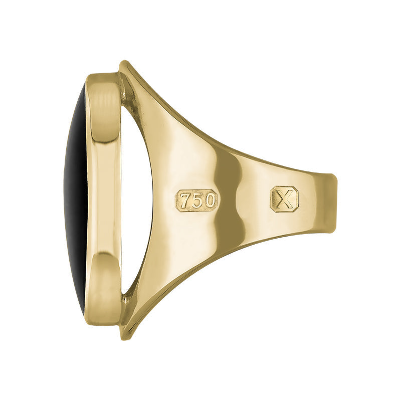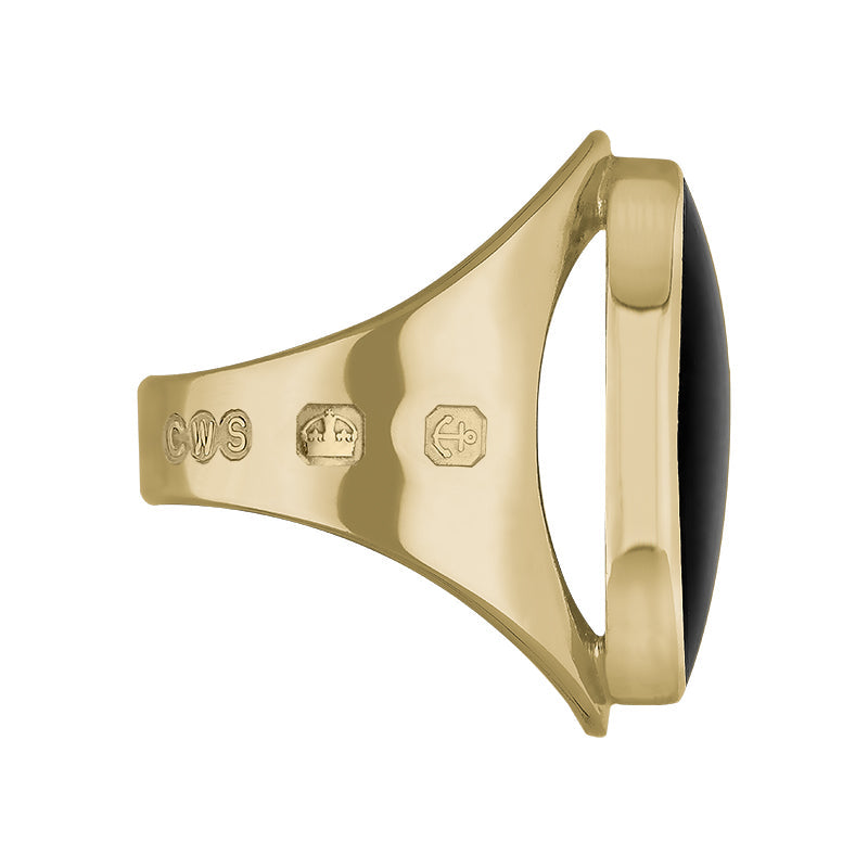 18ct Yellow Gold Whitby Jet Hallmark Medium Oval Ring, R012_FH.