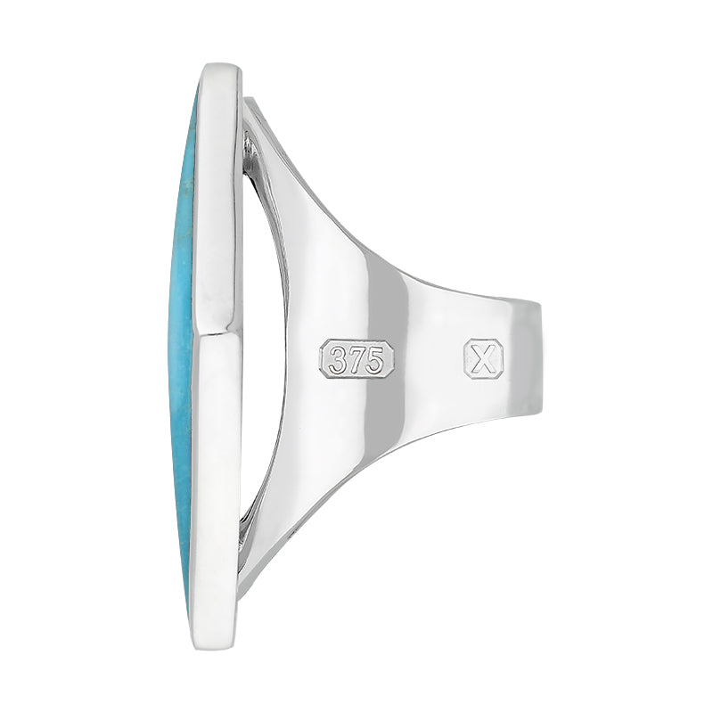 9ct White Gold Turquoise Hallmark Medium Rhombus Ring