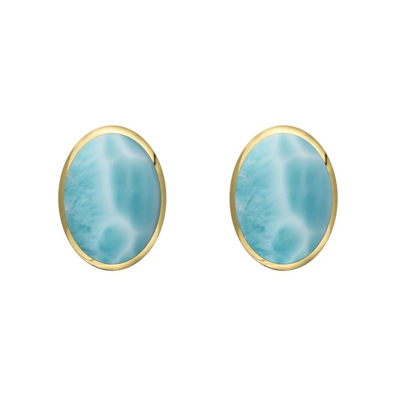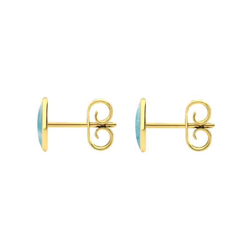 9ct Yellow Gold Larimar 7 x 5mm Classic Small Oval Stud Earrings, E005.