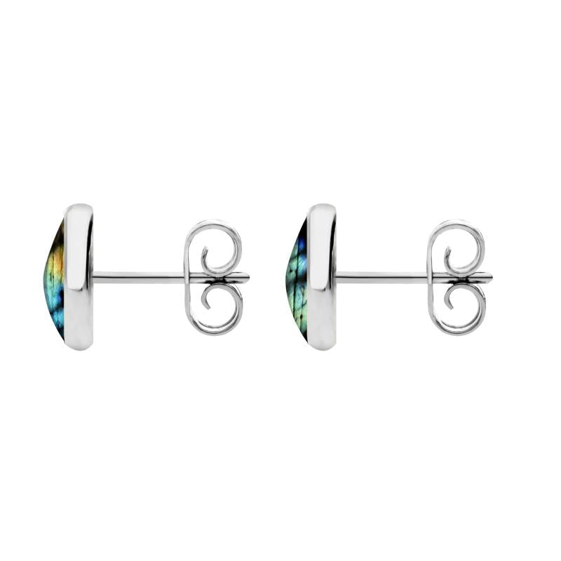 9ct Yellow Gold Spectrolite 8mm Classic Large Round Stud Earrings, E004.