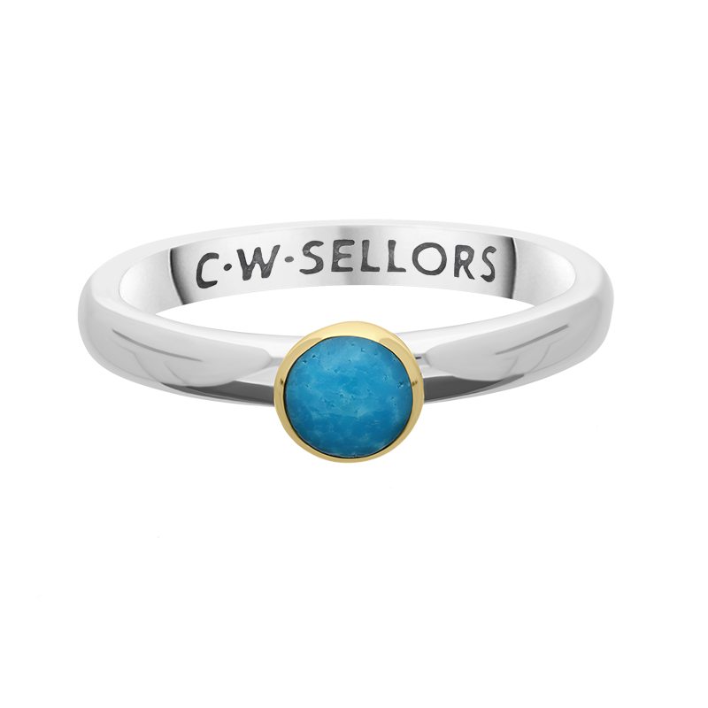 9ct Yellow Gold Sterling Silver Turquoise Stepping Stones 5mm Round Bezel Set Ring