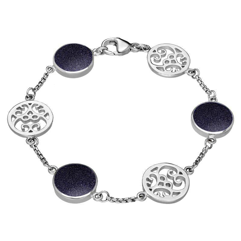 Sterling Silver Blue Goldstone Flore Filigree Bracelet