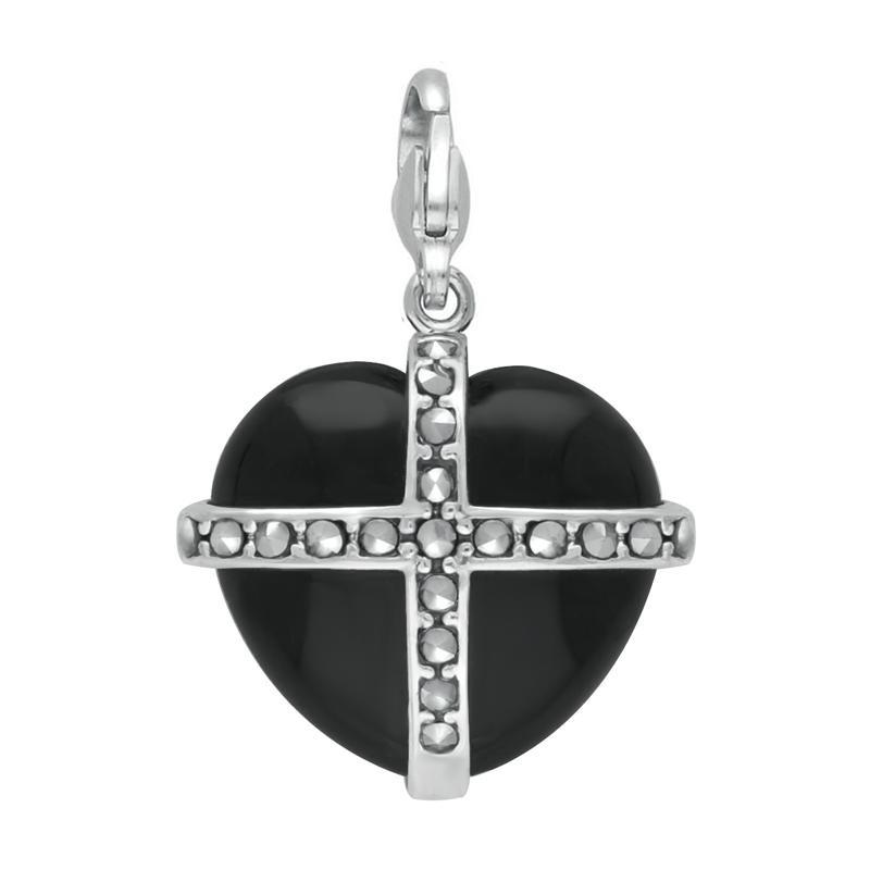 Sterling Silver Whitby Jet One Marcasite Large Cross Heart Charm, G785.