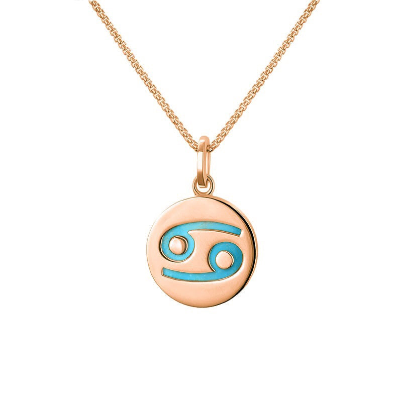 • 9ct Rose Gold Turquoise Zodiac Cancer Round Necklace - P3603 (ZDA-018)
