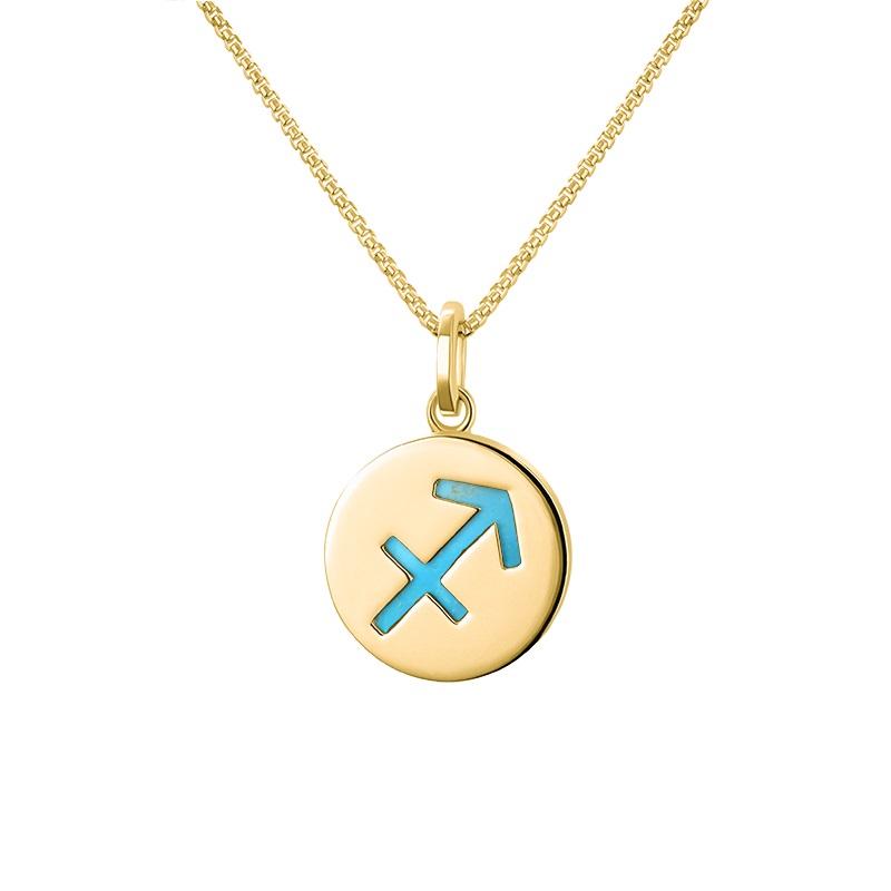 • 9ct Yellow Gold Turquoise Zodiac Sagittarius Round Necklace - P3602 (ZDA-318)