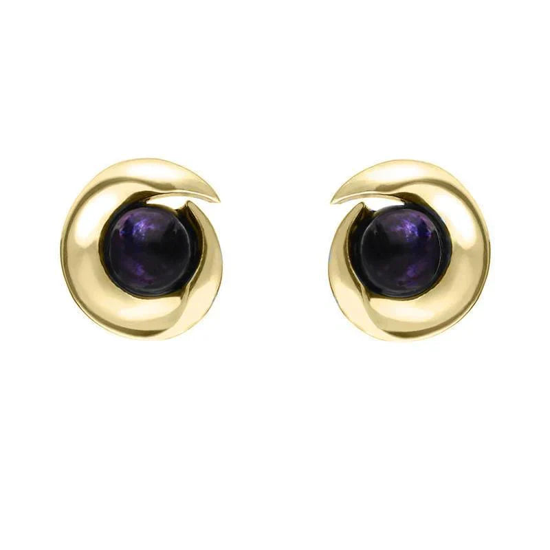 9ct Yellow Gold Blue John Spiral Stud Earrings, E1913.