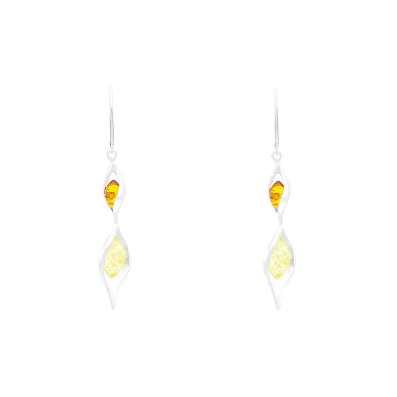 Sterling Silver Amber Graduated Twist Drop Earrings. E1765.