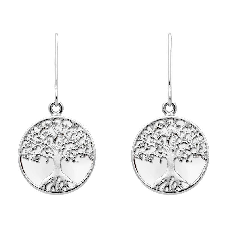 Sterling Silver Bauxite Round Tree of Life Drop Earrings, E2429.