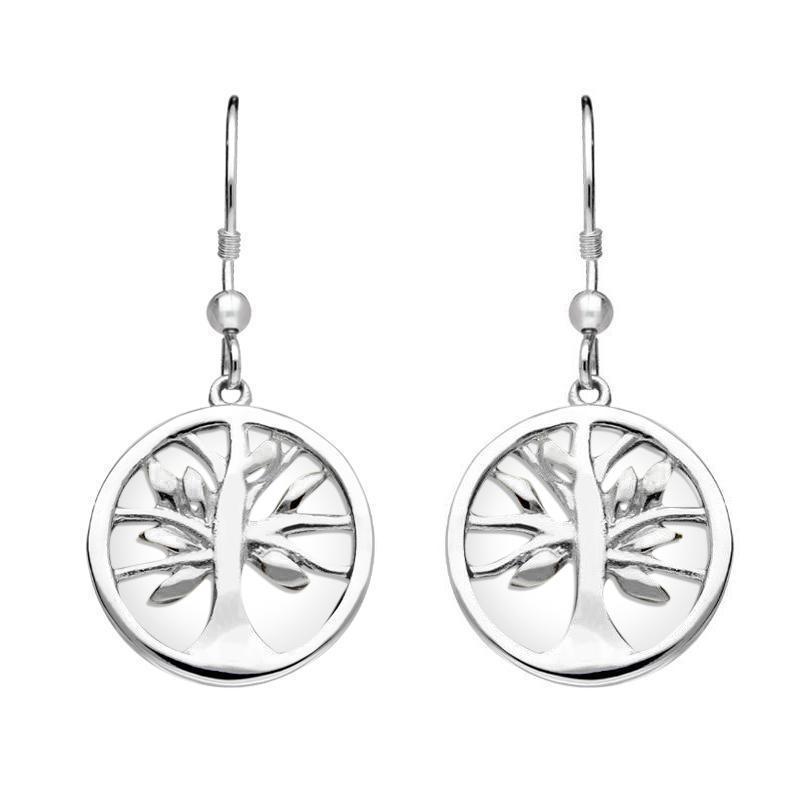 Sterling Silver Bauxite Round Tree of Life Drop Earrings, E2485.