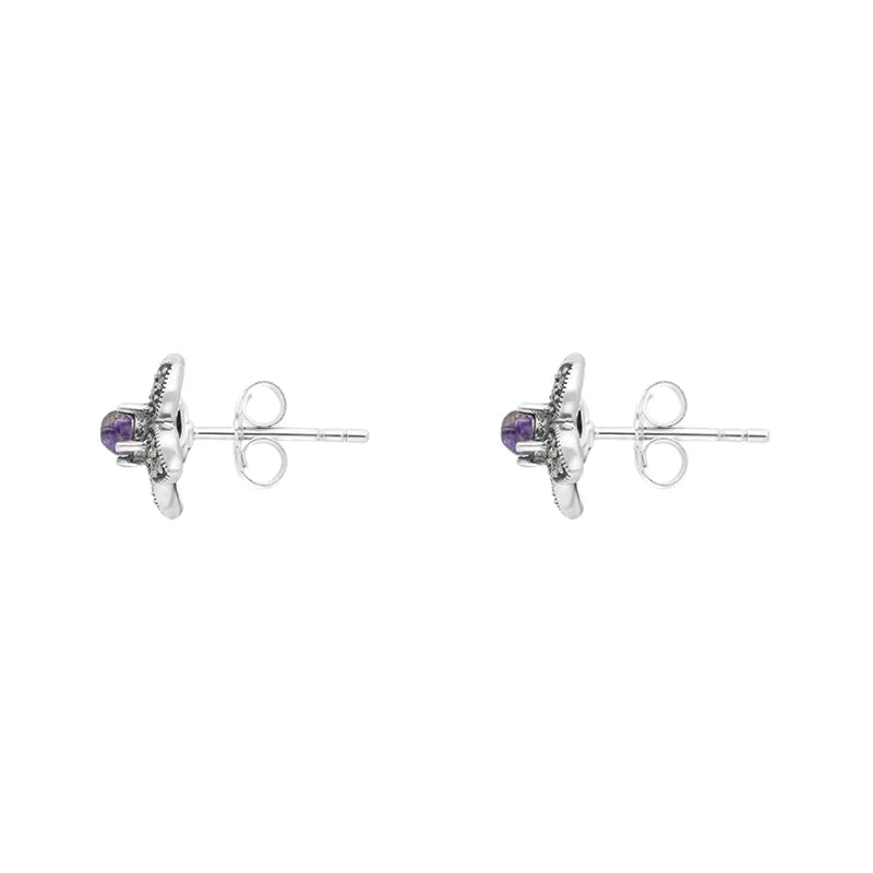 • Sterling Silver Blue John Marcasite Flower Stud Earrings - E1696 (MRC-174)
