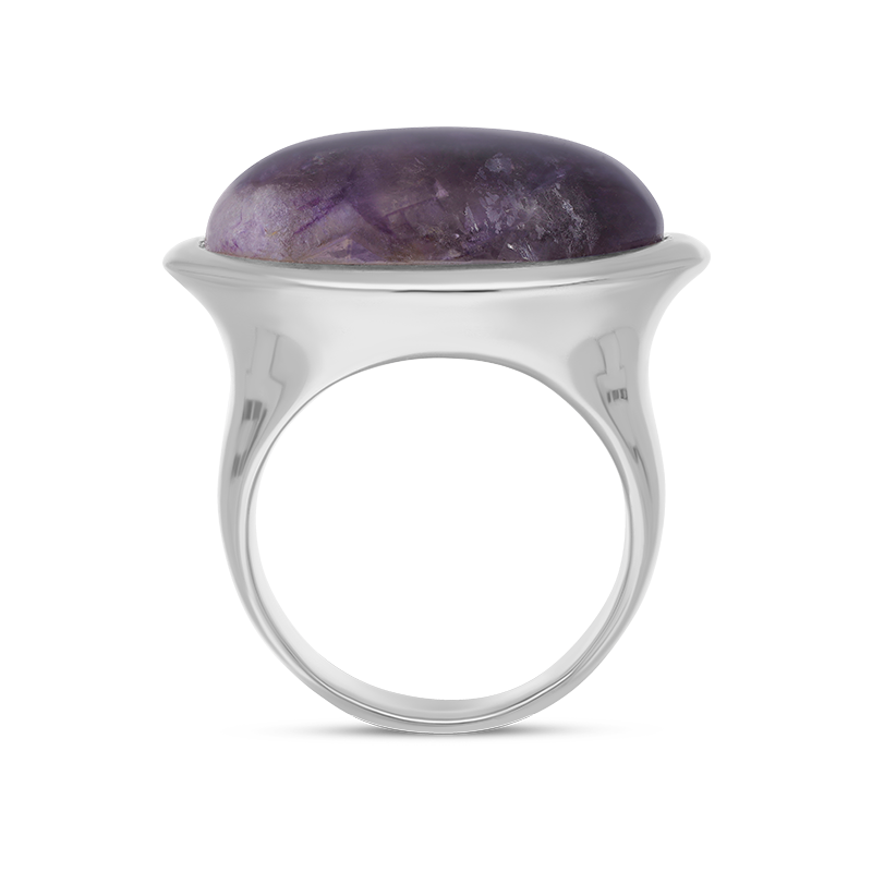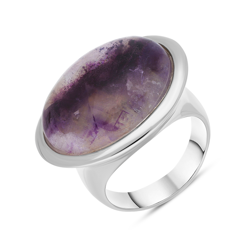 A classic, wide oval shaped sterling silver and Blue John ring. The hand polished oval Blue John gemstone sits proudly, making this ring a flattering shape for a multitude of fingers and a popular style choice. The gemstone has been sourced directly from Castleton, Derbyshire. Dimensions: 24mm x 18mm.