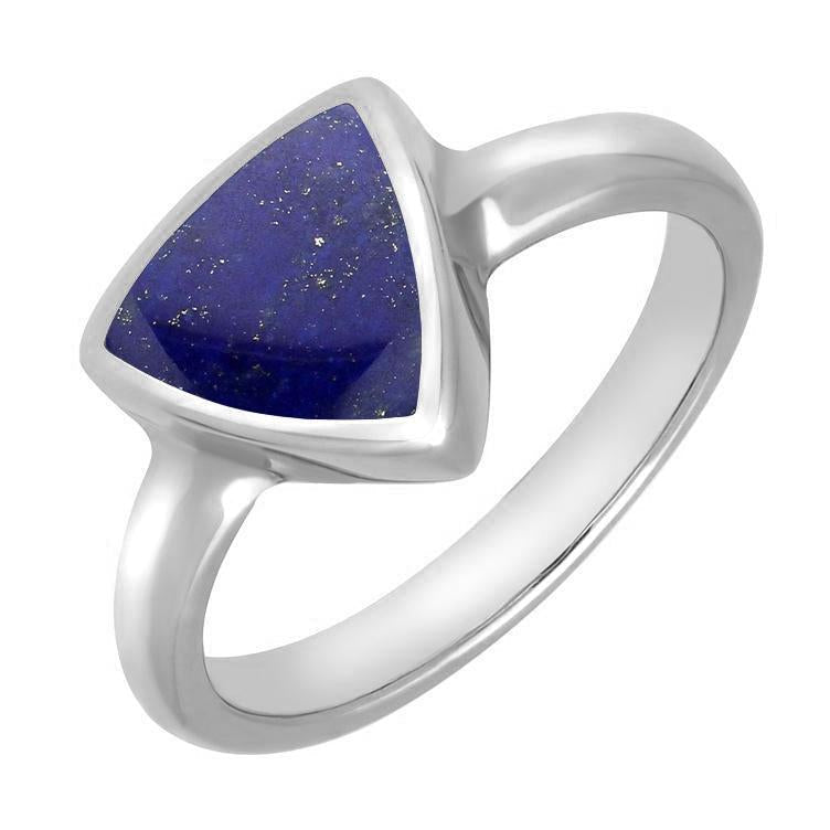 Sterling Silver Lapis Lazuli Curved Triangle Ring, R407.
