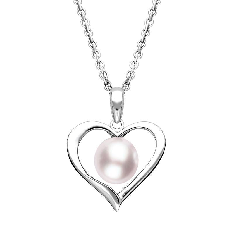 Sterling Silver 8mm Pink Pearl Open Heart Necklace