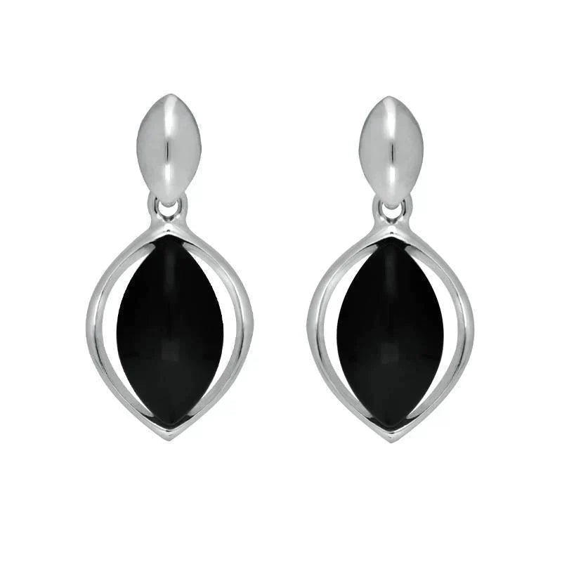 Sterling Silver Whitby Jet Marquise Centre Drop Earrings