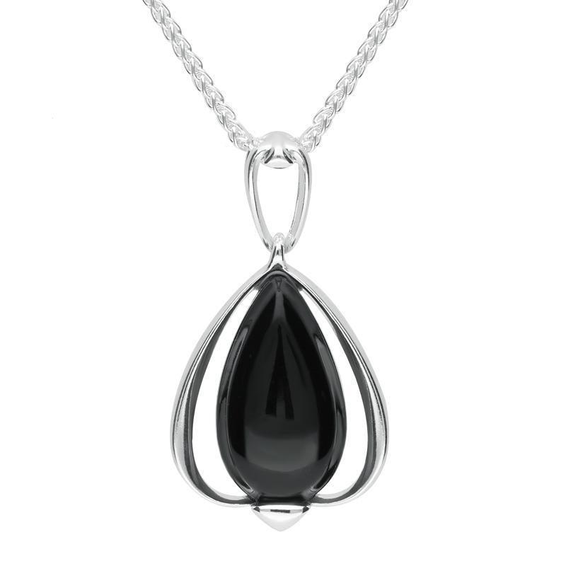 Sterling Silver Whitby Jet Open Side Pear Necklace, P2176