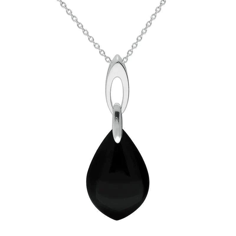 Sterling Silver Whitby Jet Pear Stone Open Bale Necklace