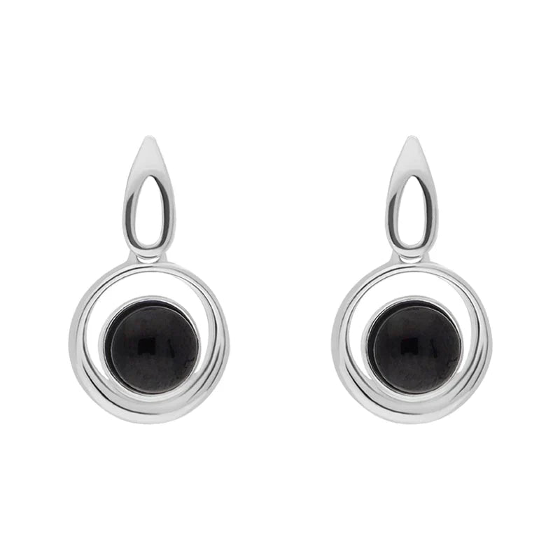 Sterling Silver Whitby Jet Round Swirl Drop Earrings