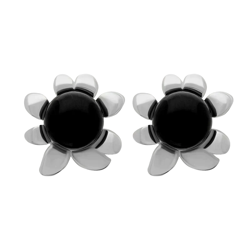 Sterling Silver Whitby Jet Small Round Petal Edge Stud Earrings