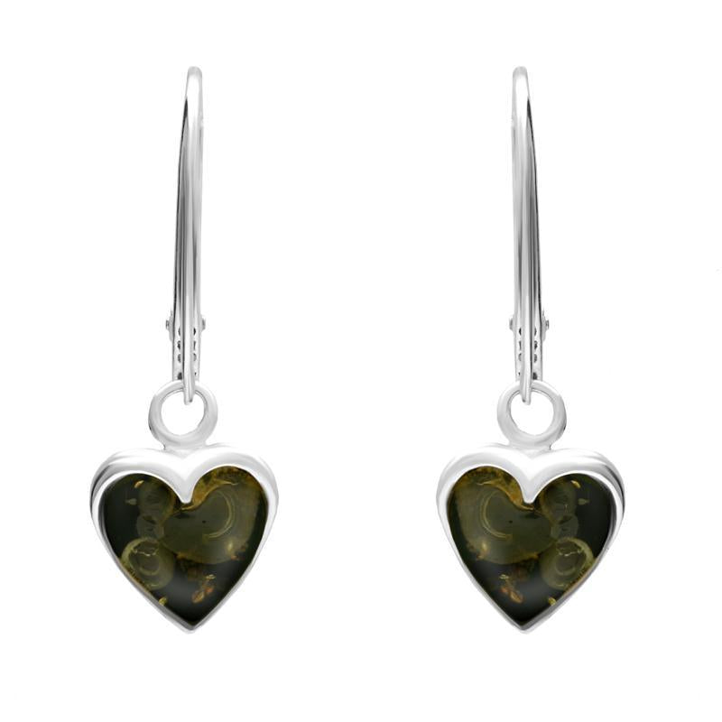 Sterling Silver Green Amber Heart Hook Earrings, E2526.