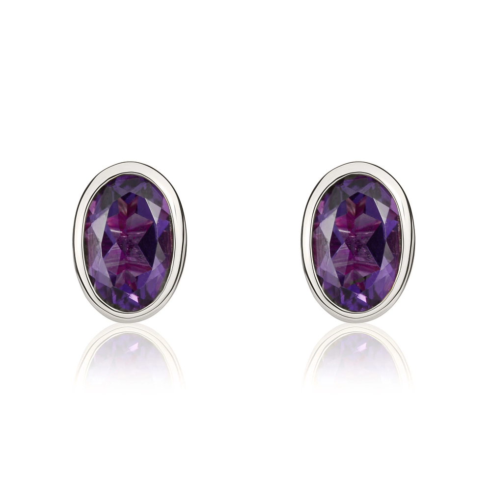 9ct White Gold Amethyst 6x4mm Oval Rub Over Set Stud Earrings 33-51-081.