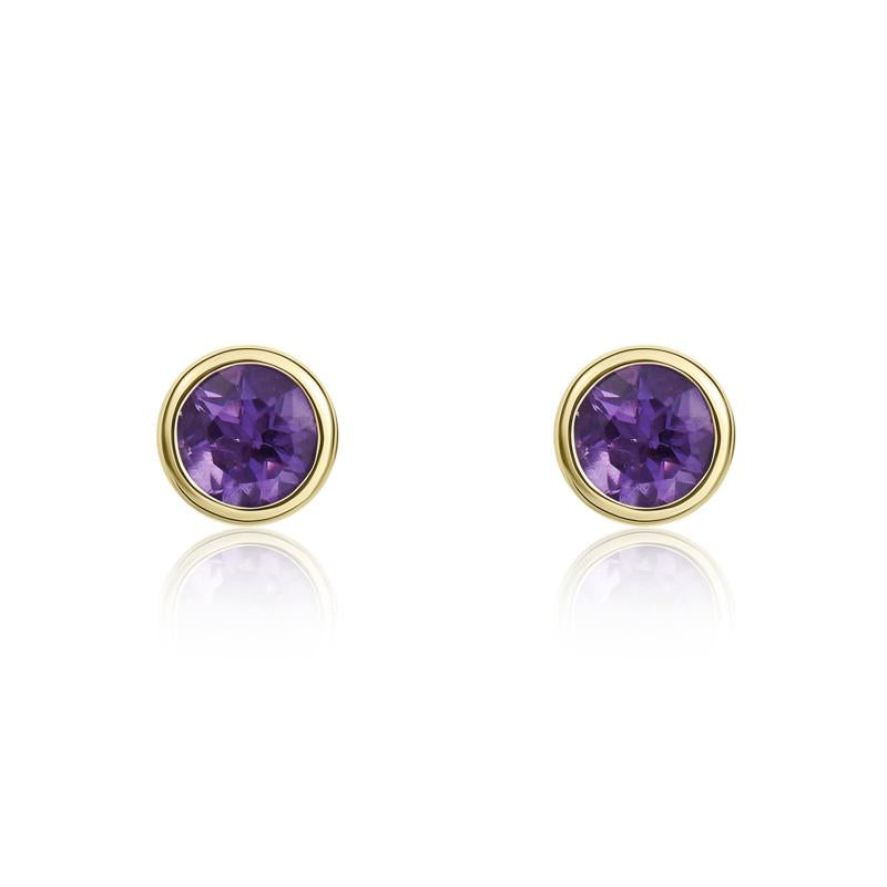 9ct Yellow Gold Amethyst 3mm Round Rub Over Set Stud Earrings, 33-51-073.