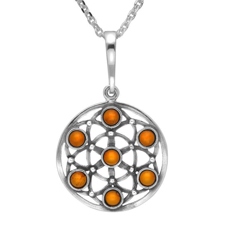 Sterling Silver Amber Round Open Necklace. P3172.