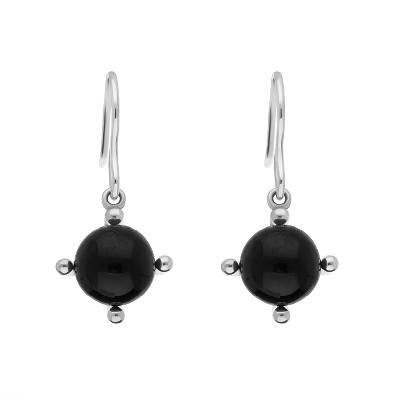 These versatile earrings feature two 8mm round beads crafted from the finest Whitby Jet, sourced directly from the north east coast of Yorkshire. These simple earrings are perfect for everyday wear and are secured with sterling silver hook fitments.