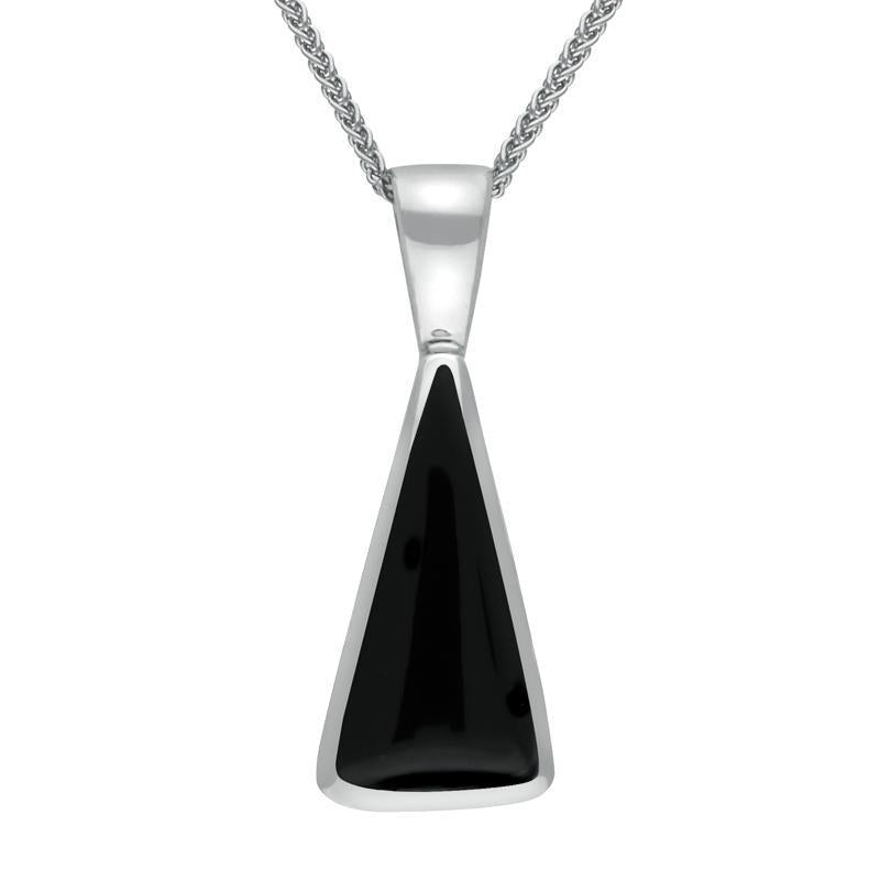 Sterling Silver Whitby Jet Triangle Shape Necklace, P023.