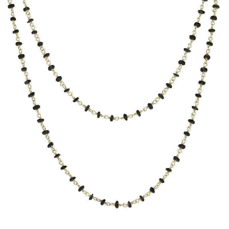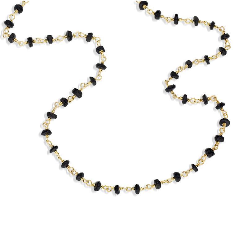 This Whitby Jet and yellow gold plate Shop Amber necklace features 4mm sized Whitby Jet gemstones, set on a delicate sterling silver chain link necklace.  A perfect gift for someone special. Length: 30 inches.