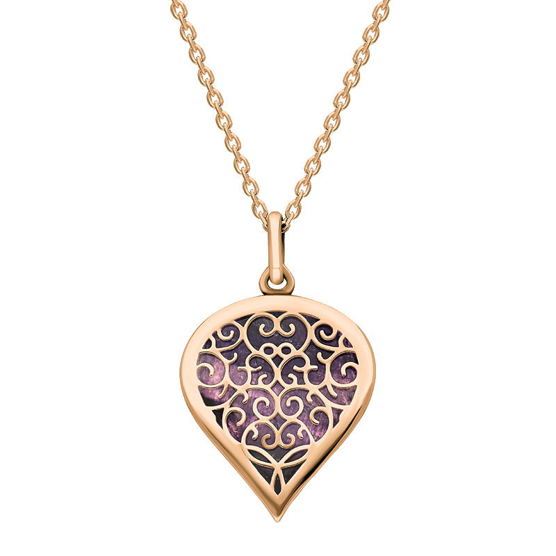 • 9ct Rose Gold Blue John Flore Filigree Medium Heart Necklace - P3630 (FLR-072)