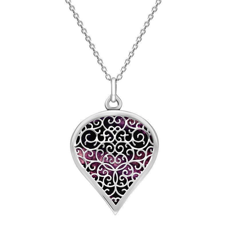 • 9ct White Gold Blue John Flore Filigree Large Heart Necklace - P3631 (FLR-107)