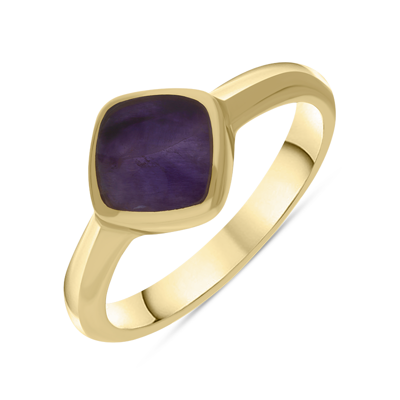 9ct Yellow Gold Blue John Cushion Ring, R406.