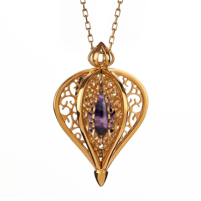 9ct Yellow Gold Blue John Flore Filigree Small Necklace