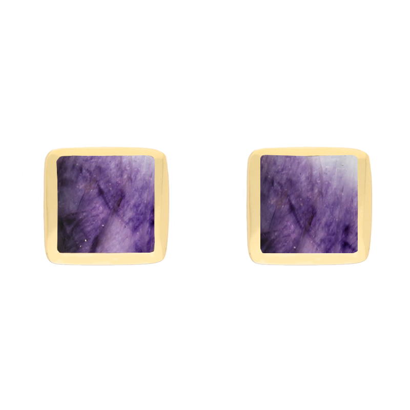 • 9ct Yellow Gold Sterling Silver Blue John Stepping Stones Square Stud Earrings - E1295 (SPS-423)