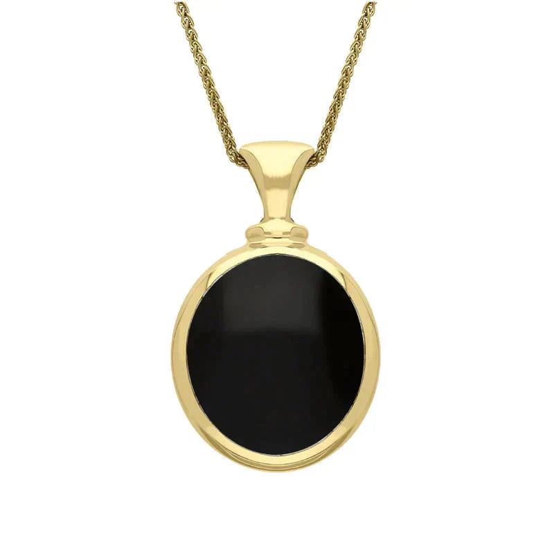 9ct Yellow Gold Whitby Jet Blue John Small Double Sided Oval Fob Necklace, P219.
