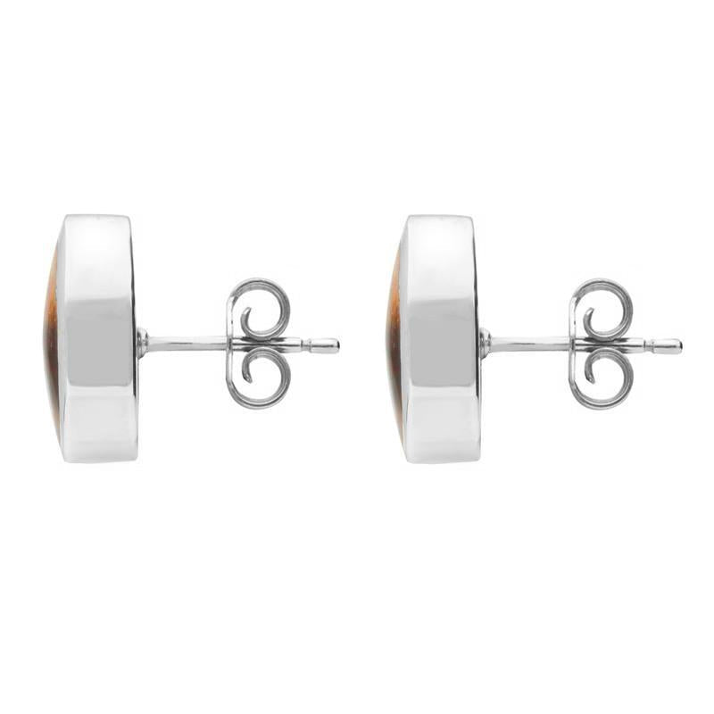 These classic stud earrings features two stunning oval shaped cabochon pieces of rare Blue John stone that have been sourced directly from Castleton, Derbyshire. The stones are set within simple sterling silver frames that are completed by post and butterfly fastenings for easy wear.