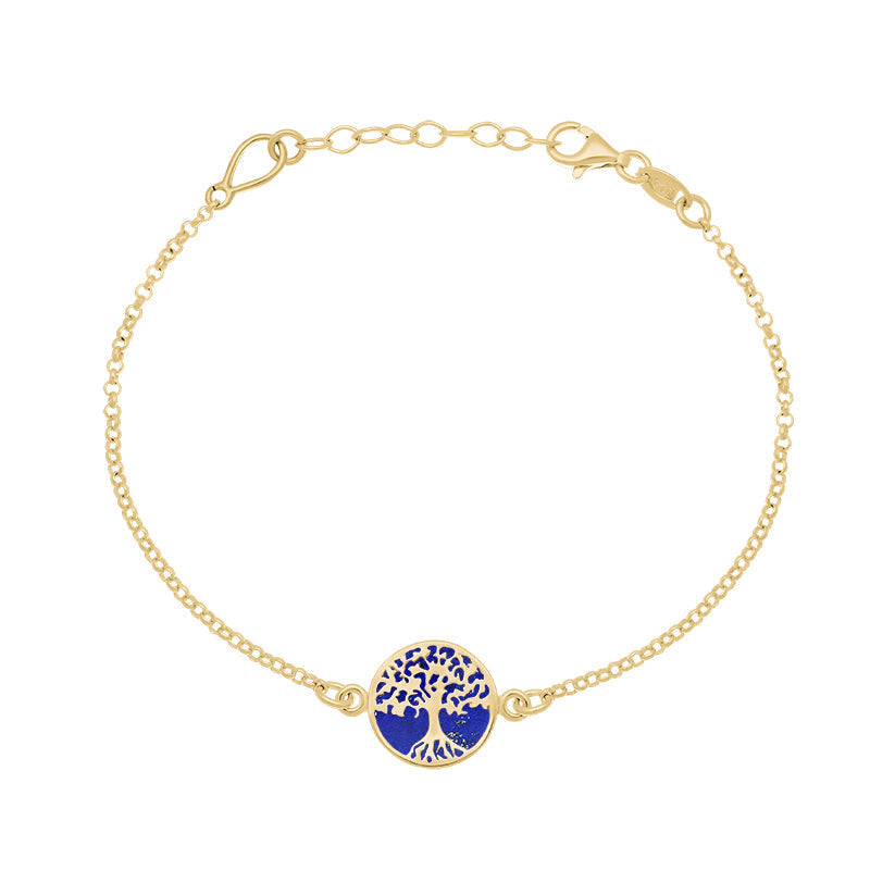 9ct Yellow Gold Lapis Lazuli Round Tree of Life Chain Bracelet