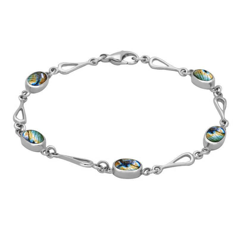 Sterling Silver Spectrolite Oval Spoon Link Bracelet