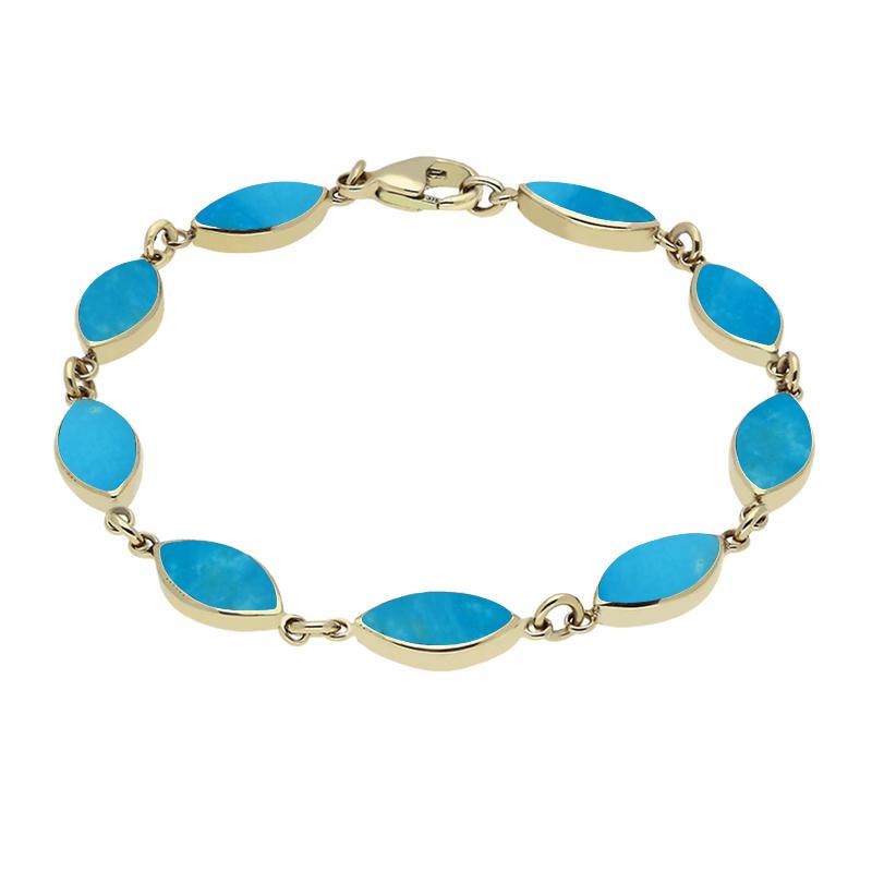 9ct Yellow Gold Turquoise Marquise Bracelet